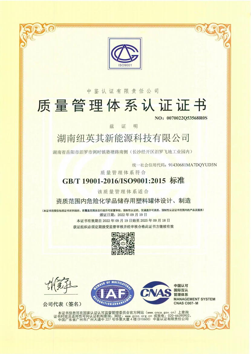 质量管理体系认证证书